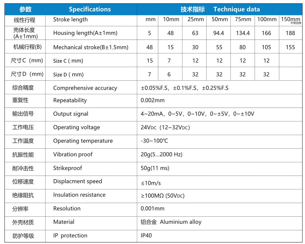 NS-WY02系列 位移传感器